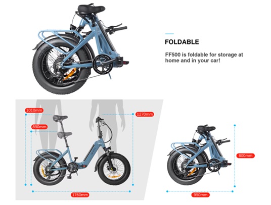 DYV FF500 2024 E bike 20″ 48V 14AH 500W 7 Speed fat tire Hybrid Ebike Off Road Mid Drive Color: Sky Blue