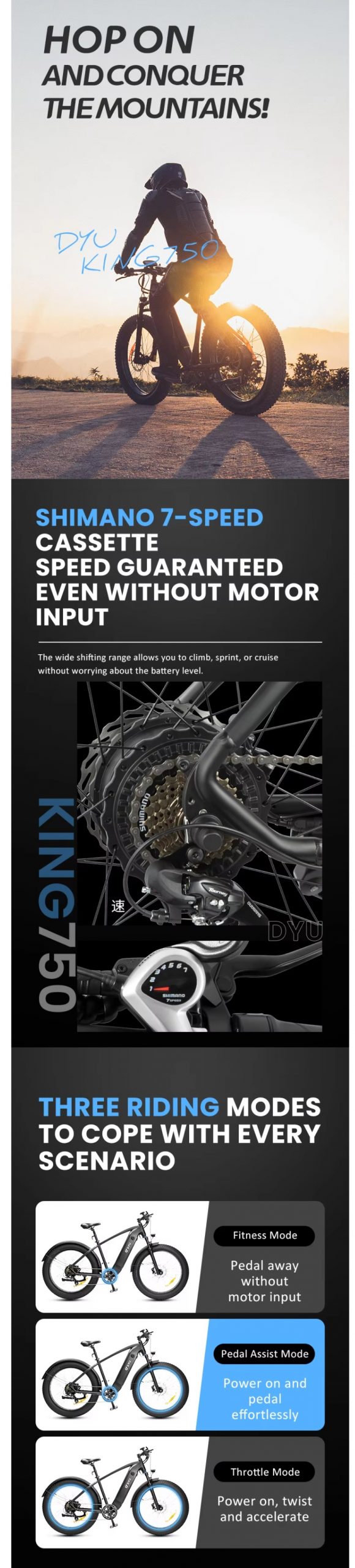 DYV KING 750 MTB New Aluminum alloy 26″ 48V 750W 20Ah Retro Mountain Ebike Road Dirt Fat Tire E Bike Fast Ebike full suspension