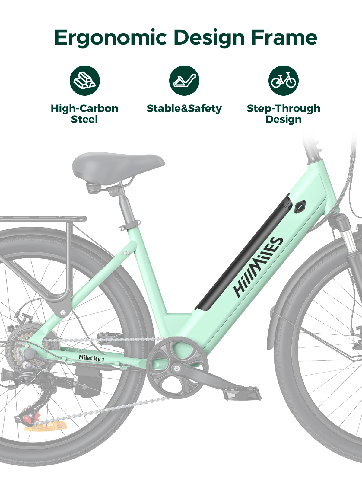 10 reviews for E-Bike MileCity 1 26 ” for Urban Commute 250W Motor 36V 13Ah Battery 120km Range Max Speed 25 km/h 7 Gears Disc Brakes Colors: celadon