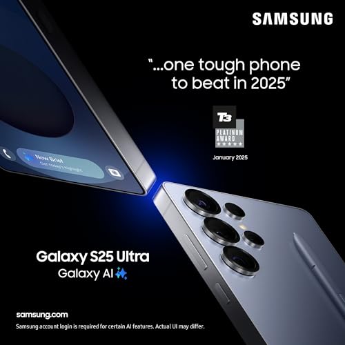 Samsung Galaxy S25 Ultra AI Smartphone, Galaxy AI, 12GB Memory, 1TB Storage, 200MP Camera, S Pen Included, Titanium Black, 3 Year Manufacturer Extended Warranty (UK Version)